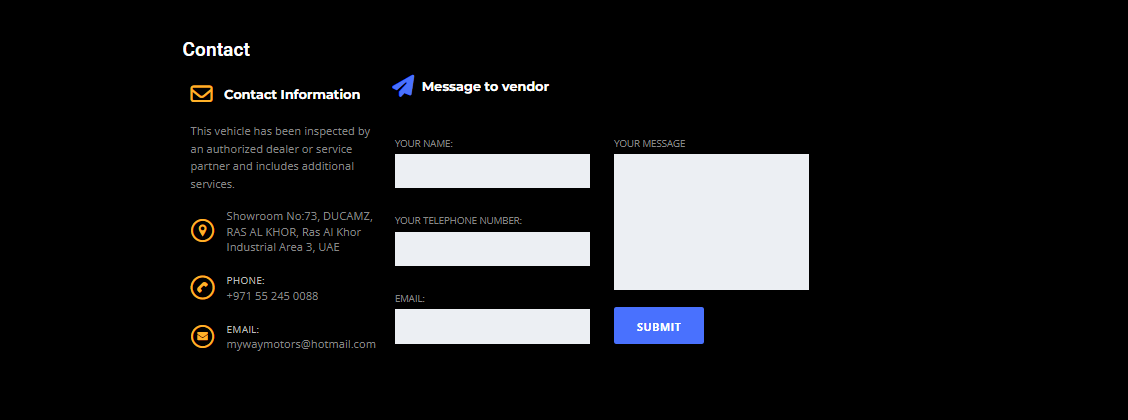 Once you’ve selected a vehicle, contact us using one of the following options: online form, email, phone, WhatsApp.